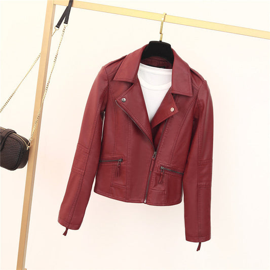Damen Biker Jacke Kurz - Reißverschluss & Stehkragen