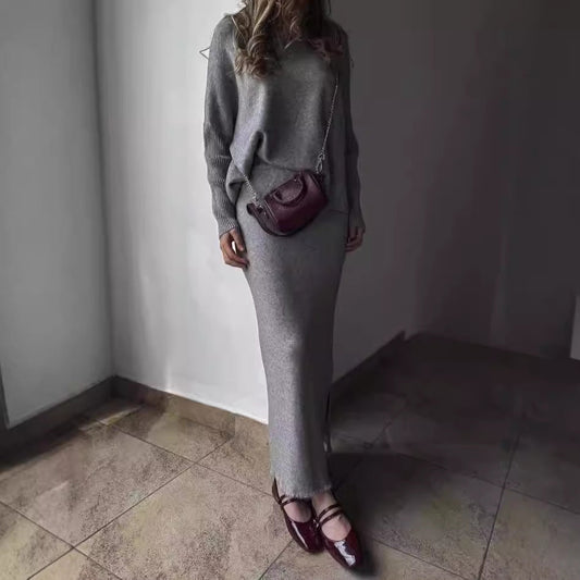 Damen Elegant gestricktes Maxikleid mit lässigem Schnitt Stilzeits