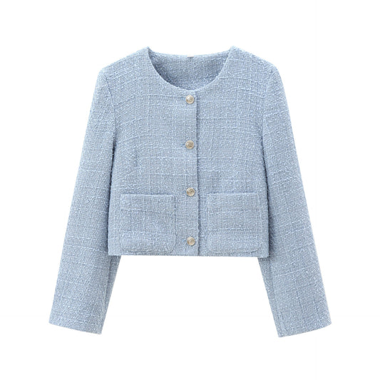 Damen elegante Kurzjacke im strukturierten Tweed-Stil mit praktischen Taschen Stilzeits