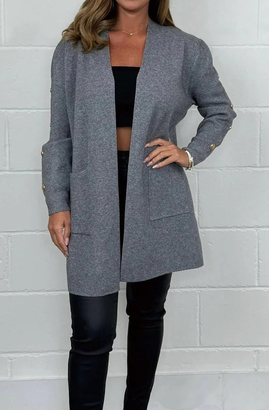 Damen Elegante Strickjacke mit Knopfdetails und Taschen Stilzeits