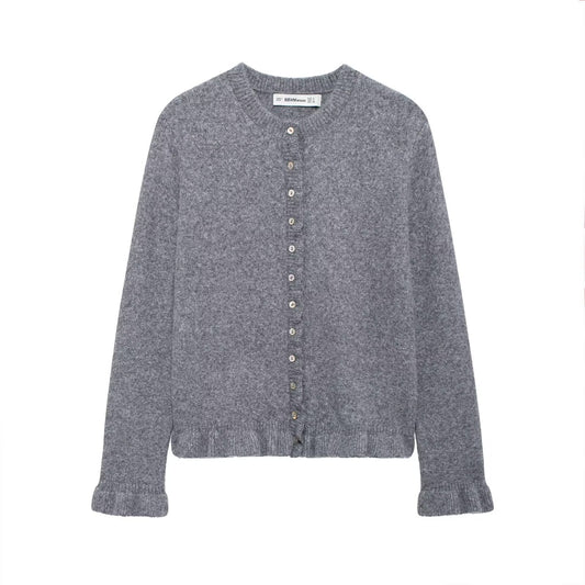 Damen elegante Strickjacke mit Wellenkante Stilzeits