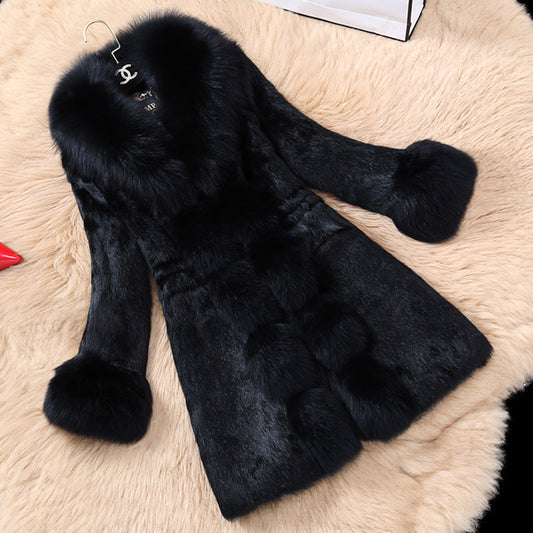 Damen eleganter Kunstfellmantel mit luxuriösem Kragen Stilzeits