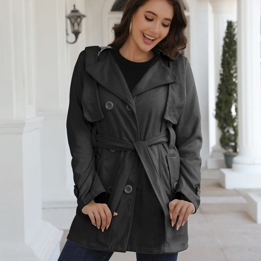Damen Eleganter Trenchcoat mit Taillengürtel und doppelt geknöpften Details Stilzeits