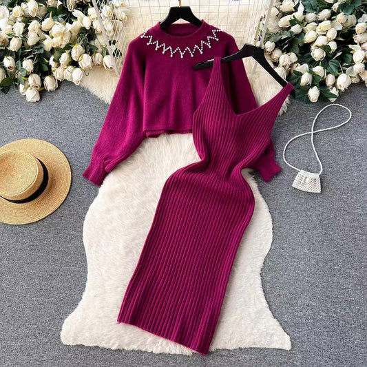 Damen Elegantes Strickkleid mit raffinierter Ribstruktur und stylischem Crop-Pullover Stilzeits