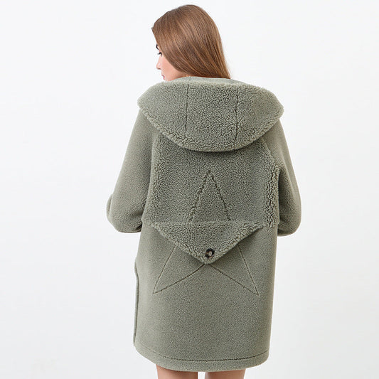 Damen Flauschige Kapuzenjacke mit Sternmotiv Stilzeits