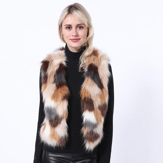 Damen Flauschige Kunstpelz-Weste im Patchwork-Design Stilzeits