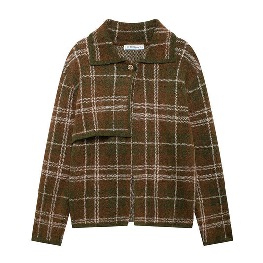 Damen Fließende Karojacke mit elegantem Stehkragen Stilzeits