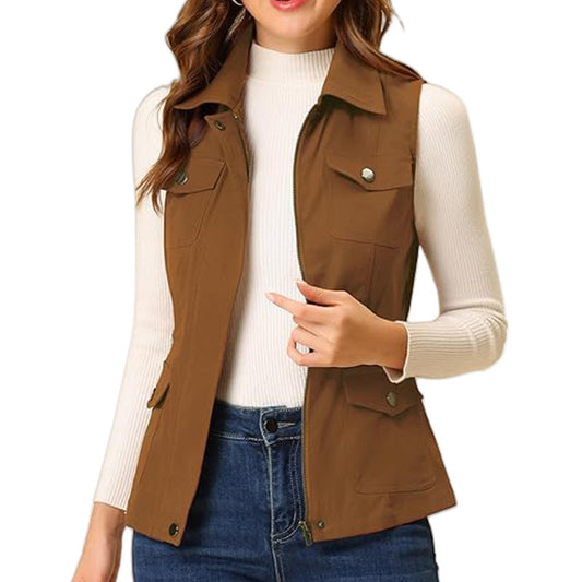 Damen funktionale Campingweste mit Taschen und Reißverschluss Stilzeits