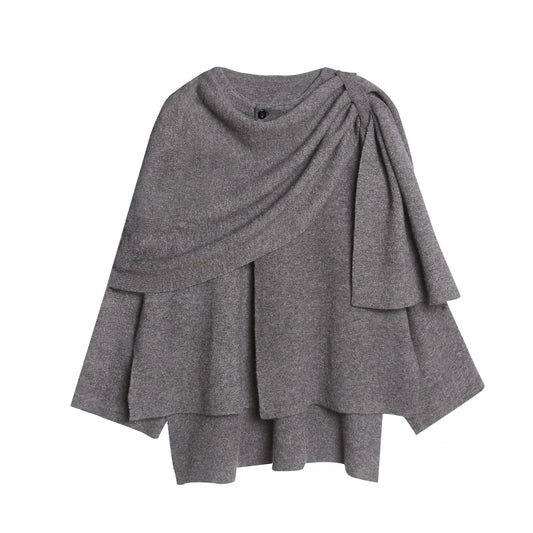 Damen gemütlicher Strickponcho mit raffinierten Drapierungen Stilzeits