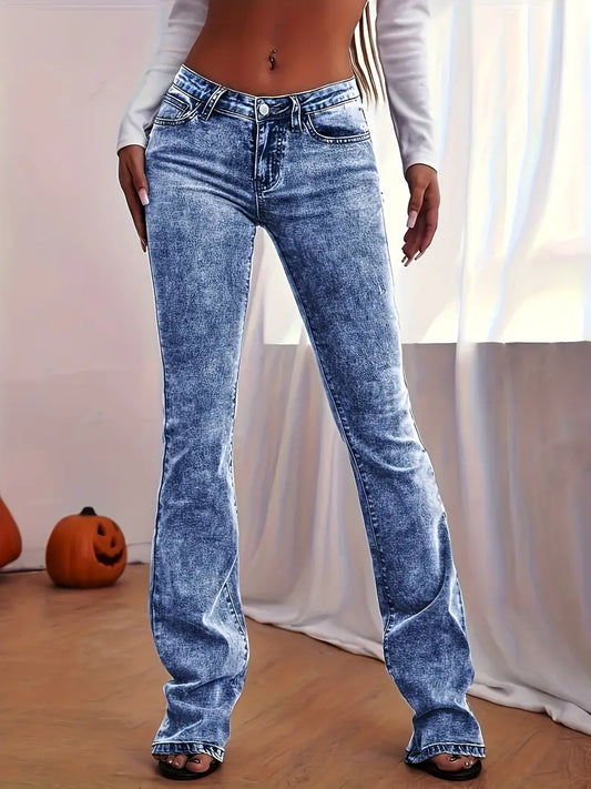 Schicke Schlagjeans in Waschblau mit Schneeflockenmuster