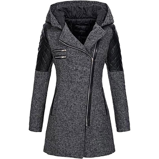 Schicker Damenmantel mit Kapuze aus Fell für den Winter