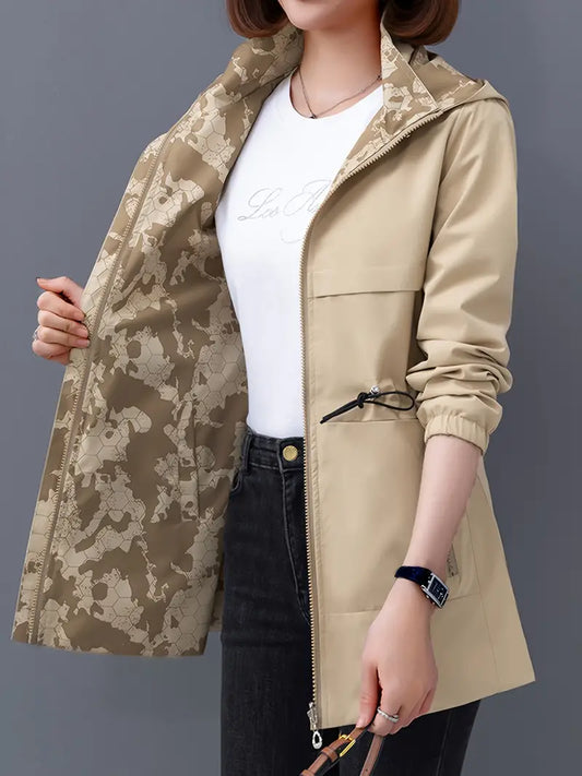 Shilune: Lockere Langarm-Kapuzenjacke mit Kordelzug für Outdoor-Aktivitäten