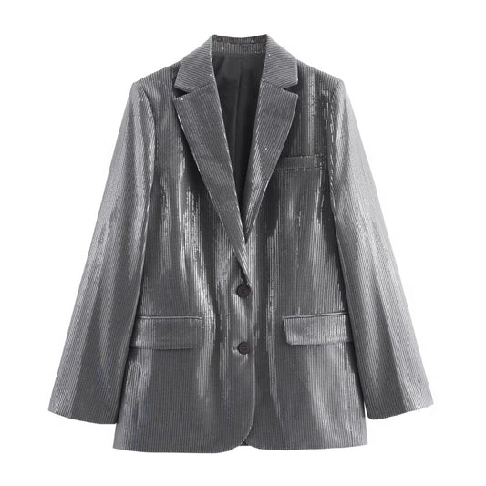 Silver Chrome Blazer and Wide-Leg Trousers for Winter