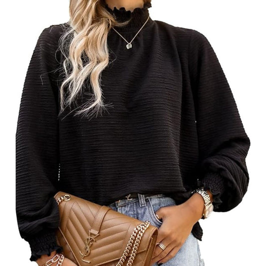 Uziyah Bluse: Gerüschte Stehkragenbluse mit Struktur