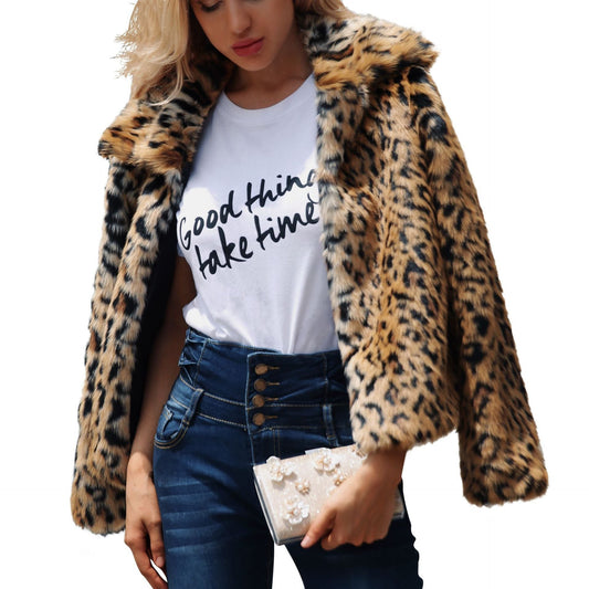Damen Kunstfelljacke im modischen Leopardenmuster mit lässigem Schnitt Stilzeits