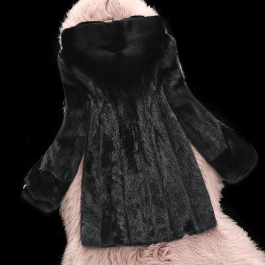 Damen Kunstfell Mantel mit eleganter Kapuze und klassischem Schnitt Stilzeits
