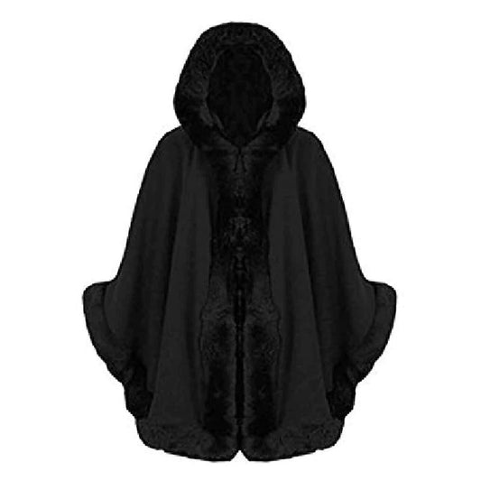 Damen Kunstfell-Cape mit voluminösem Kapuzenkragen und eleganter Felloptik Stilzeits