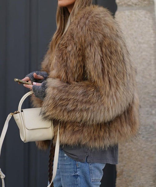 Damen Kunstfelljacke mit voluminösem Schnitt und elegantem Design Stilzeits
