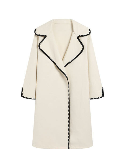 Stilzeits | Windbreaker - Übergröße - Wolle - Lange Länge - Breite Revers - Stickerei