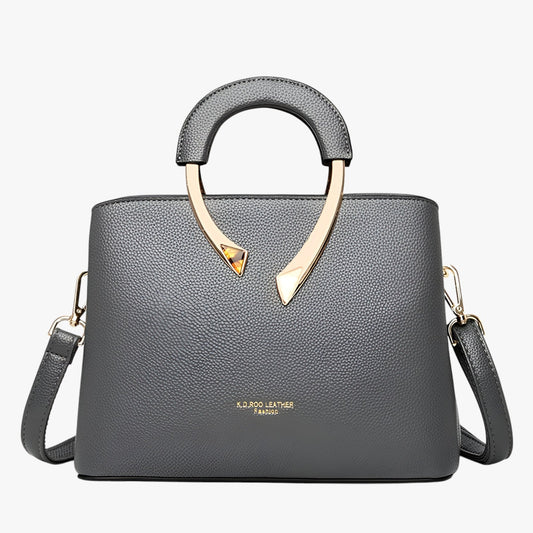 Stilvolle Damen Leder Tote Bag – Metallverschluss-Detail