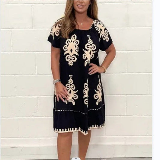 Fudus Elegantes Blumen Kurzarmkleid für den Sommer