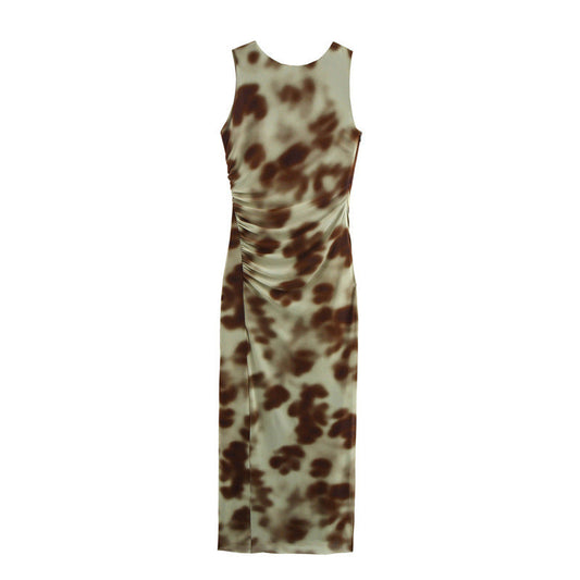 Fudus Sommerkleid für Frauen: Europäisch-amerikanisches Design, ausschnittlos, gefaltet, gemustert und mit Halterneck.