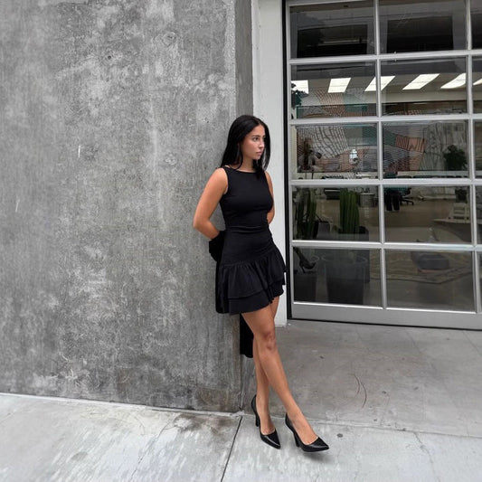 Fudus Damenkleid: Europäisch-amerikanischer Sommer-Rock, tiefes V-Ausschnitt, rückenfrei