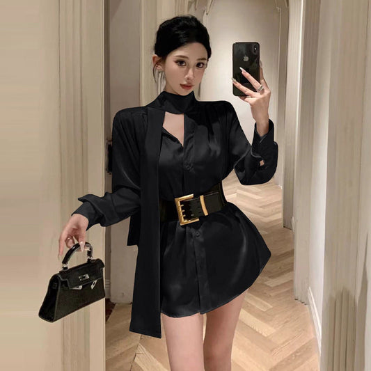 Fudus Kurzarm-Hemdblusenkleid, geteilt, Herbst