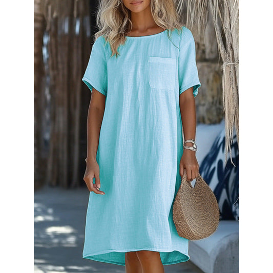 Fudus Leinenkleid: Einfarbiges, locker fallendes Kleid aus Leinen