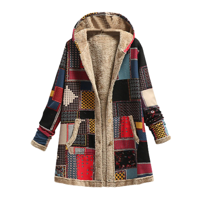 Damen gesteppte Winterjacke mit buntem Kunstdesign und praktischen Taschen Stilzeits