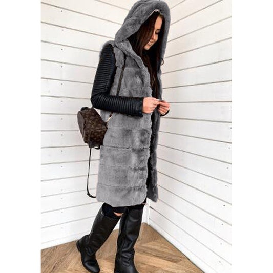Damen Modischer Kapuzen-Mantel aus Kunstfell Stilzeits