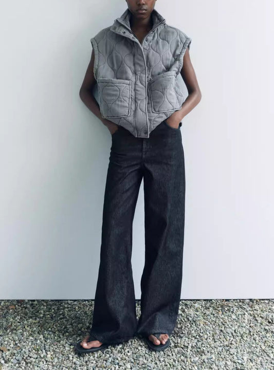 Damen gesteppte Weste mit zwei großen Taschen und hohem Kragen Stilzeits