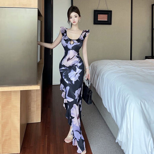 Fudus Sommerkleid: schmal geschnittenes Überknielanges Kleid mit Rückenausschnitt