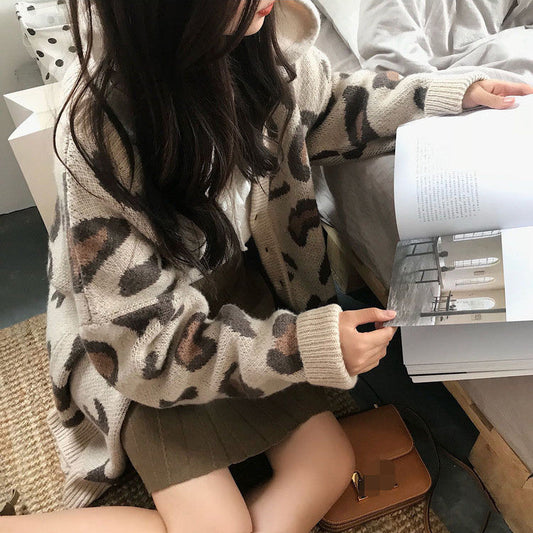 Damen gemütliche Strickjacke mit einzigartigem Leopardenmuster Stilzeits