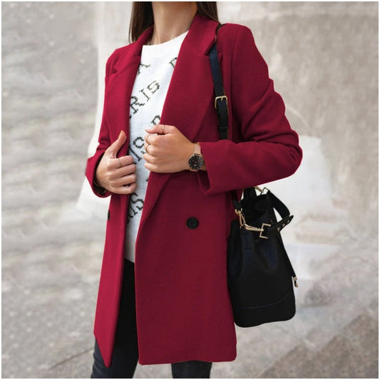 Stilzeits | für Frauen - Klassisch Tailliert - Wollmischung - Knielang - mit Knöpfen