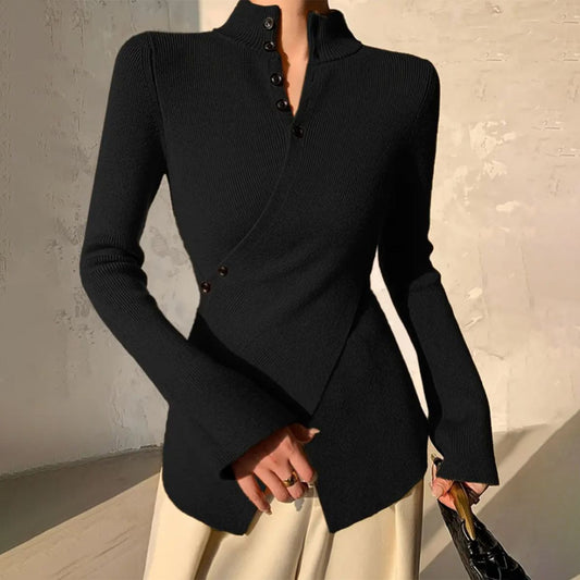 Stilzeits | Asymmetrisch Strukturstrick Bluse Polyester-mischung Elegant und Modern