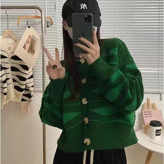Damen Strickjacke mit einzigartigem Wellenmuster und goldenen Knöpfen Stilzeits