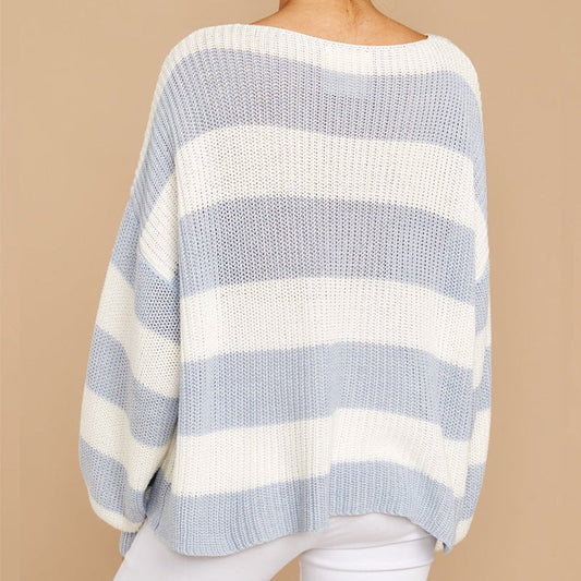 Damen Oversized Strickpullover mit modernem Streifenmuster und lockerer Passform Stilzeits