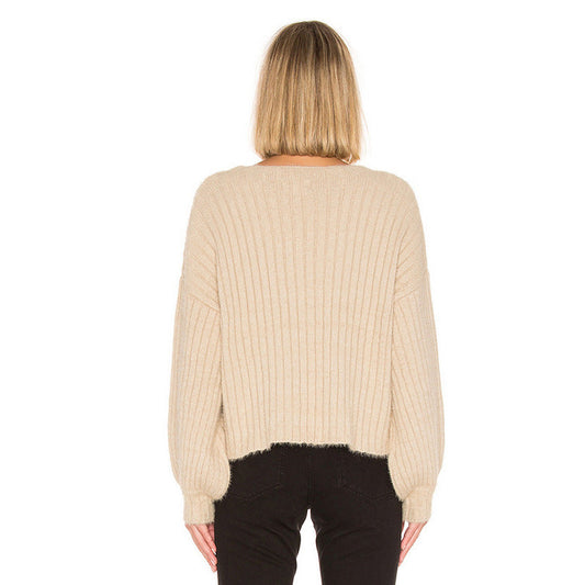 Damen modischer Strickpullover mit überschnittenen Ärmeln und feiner Rippstruktur Stilzeits