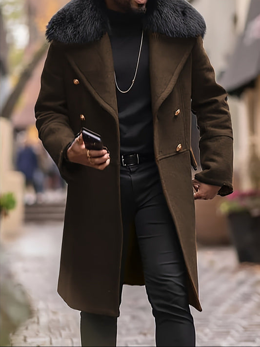 Herren eleganter Langmantel mit luxuriösem Fellkragen Stilzeits