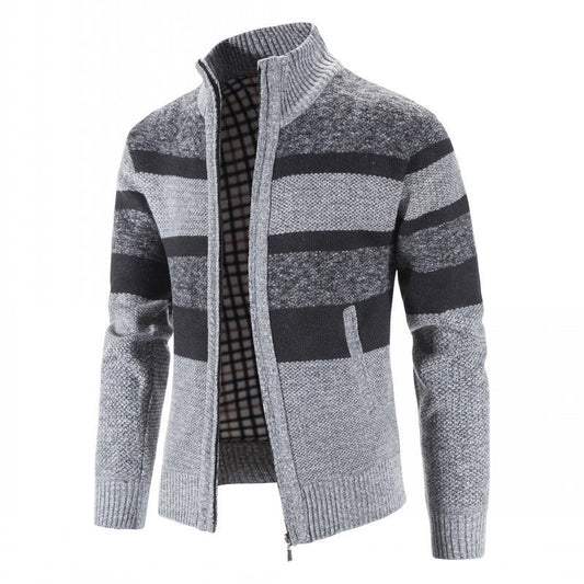 Herren modischer Strickpullover mit durchgehendem Reißverschluss und gestreiftem Design Stilzeits