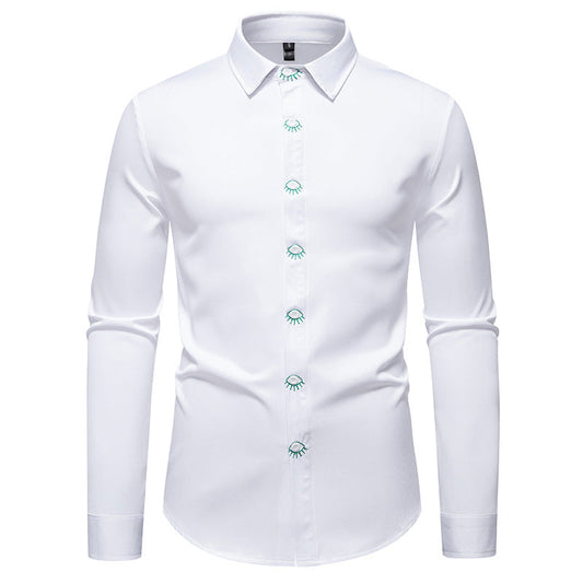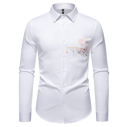 Herren Elegantes Langarmhemd mit kreativer Stickerei Stilzeits