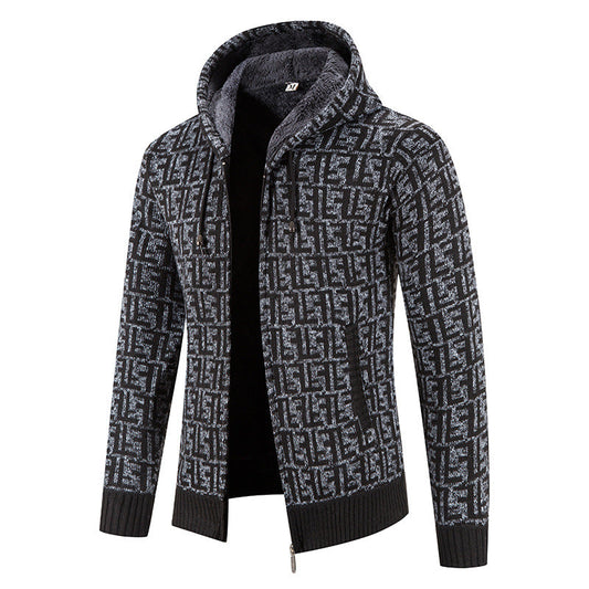 Herren Hochwertige Strickjacke mit modernem Muster und Kapuze Stilzeits