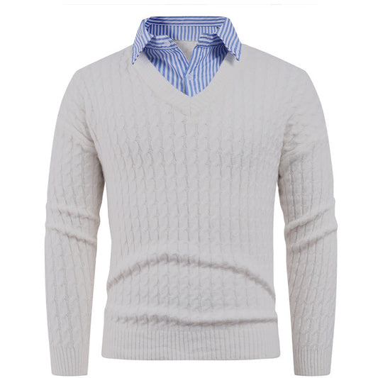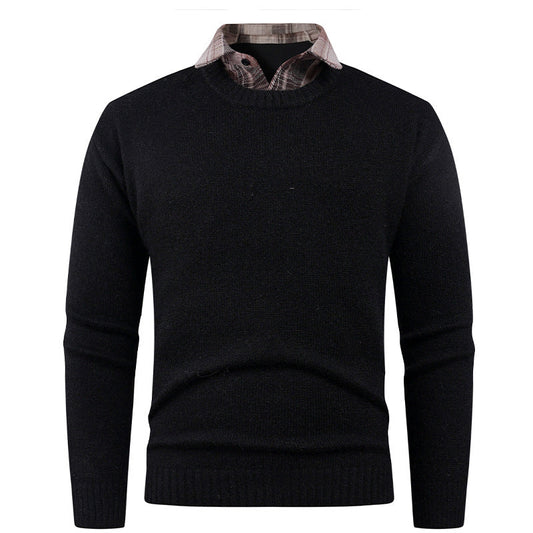 Herren Feiner Rundhalspullover mit integriertem Hemdkragen Stilzeits