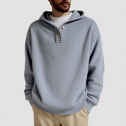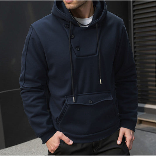 Herren Kapuzenpullover mit Knopfverschluss und praktischen Taschen Stilzeits