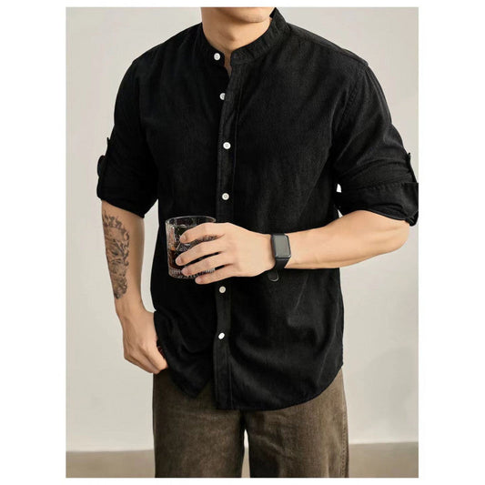 Herren Stehkragenhemd aus feinem gestreiften Stoff Stilzeits