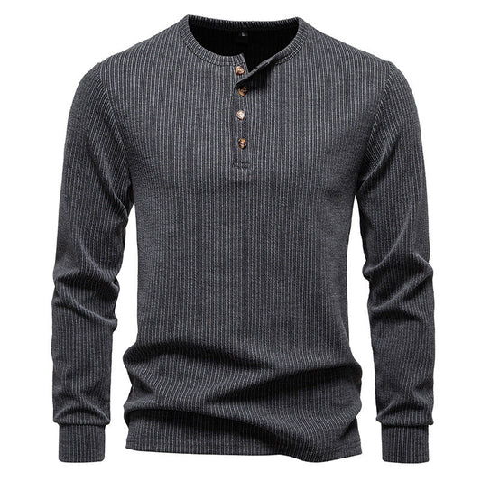 Herren Langarm Henley Shirt mit strukturiertem Streifenmuster Stilzeits