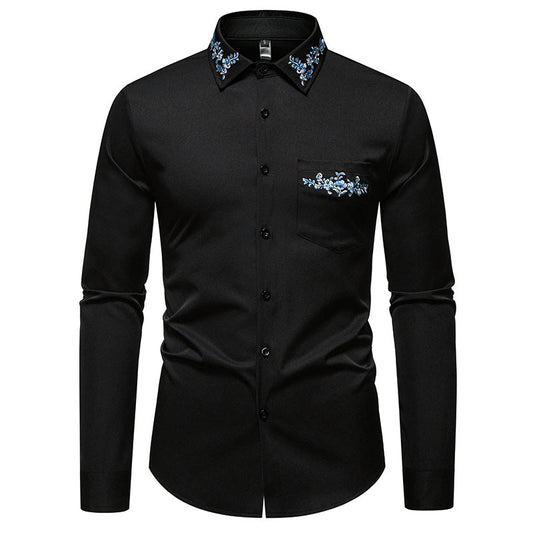 Herren Langarmhemd mit floralem Stickdesign Stilzeits