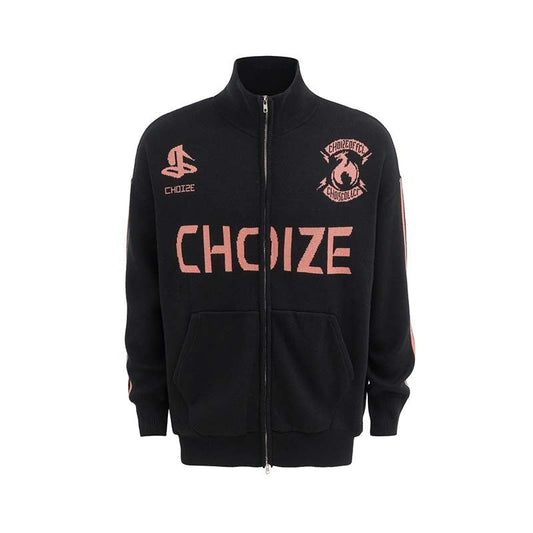 Julian Strickjacke: Retro-Jacquard mit Stehkragen