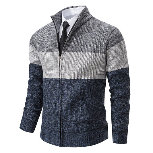 Herren modische Strickjacke mit hohem Kragen und modernem Reißverschluss Stilzeits